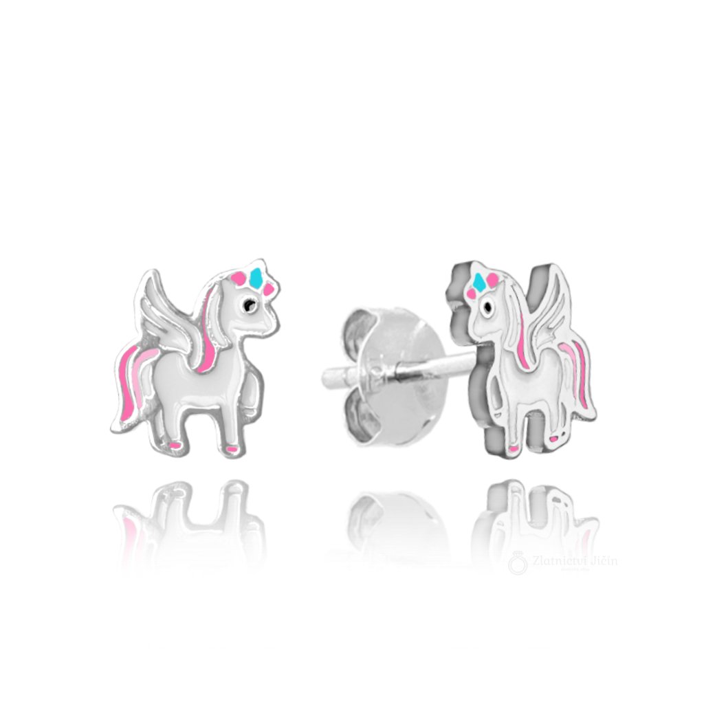 MINET Barevné dětské stříbrné náušnice JEDNOROŽCI