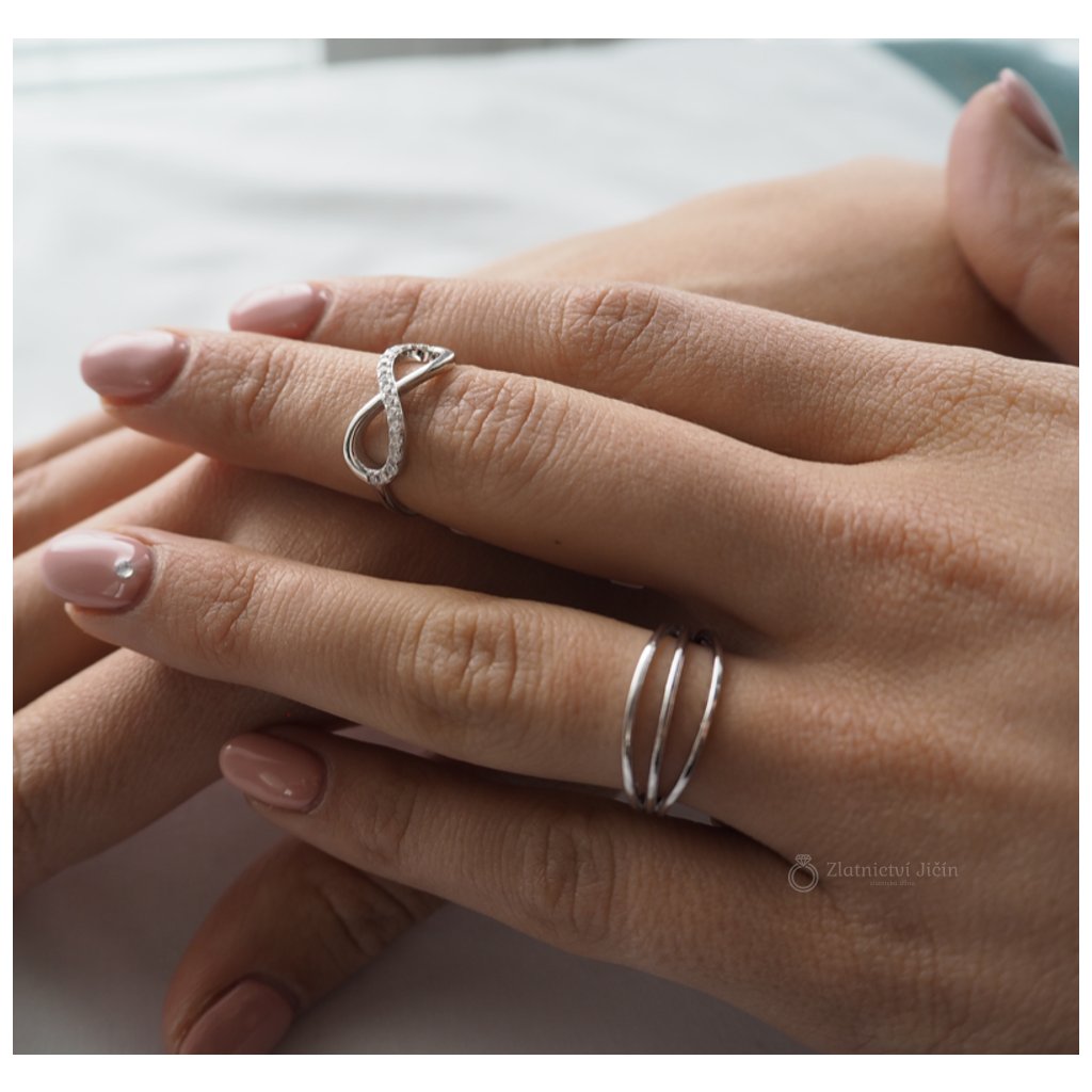 MINET Stříbrný prsten INFINITY s bílými zirkony