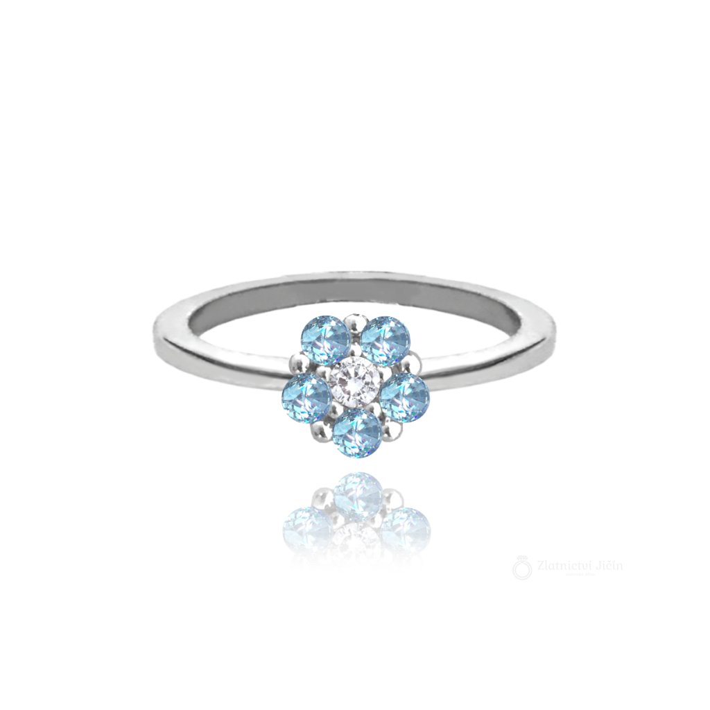 MINET Stříbrný prsten KYTIČKA se světle modrými zirkony