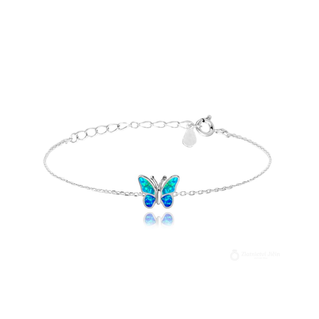 MINET Třpytivý dětský stříbrný náramek MOTÝLEK s modrým opálem