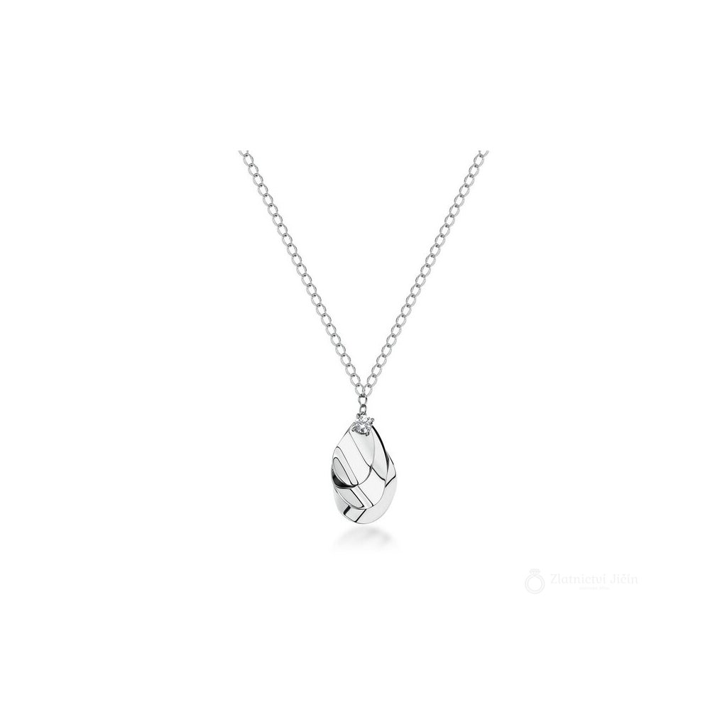 - zdobený přívěskem ve tvaru jednotlivých lesklých na sobě složených oválků s vrchním broušeným čirým krystalem, který dodává náhrdelníku jemný a sofistikovaný vzhled, který se hodí pro každodenní nošení i speciální příležitosti
