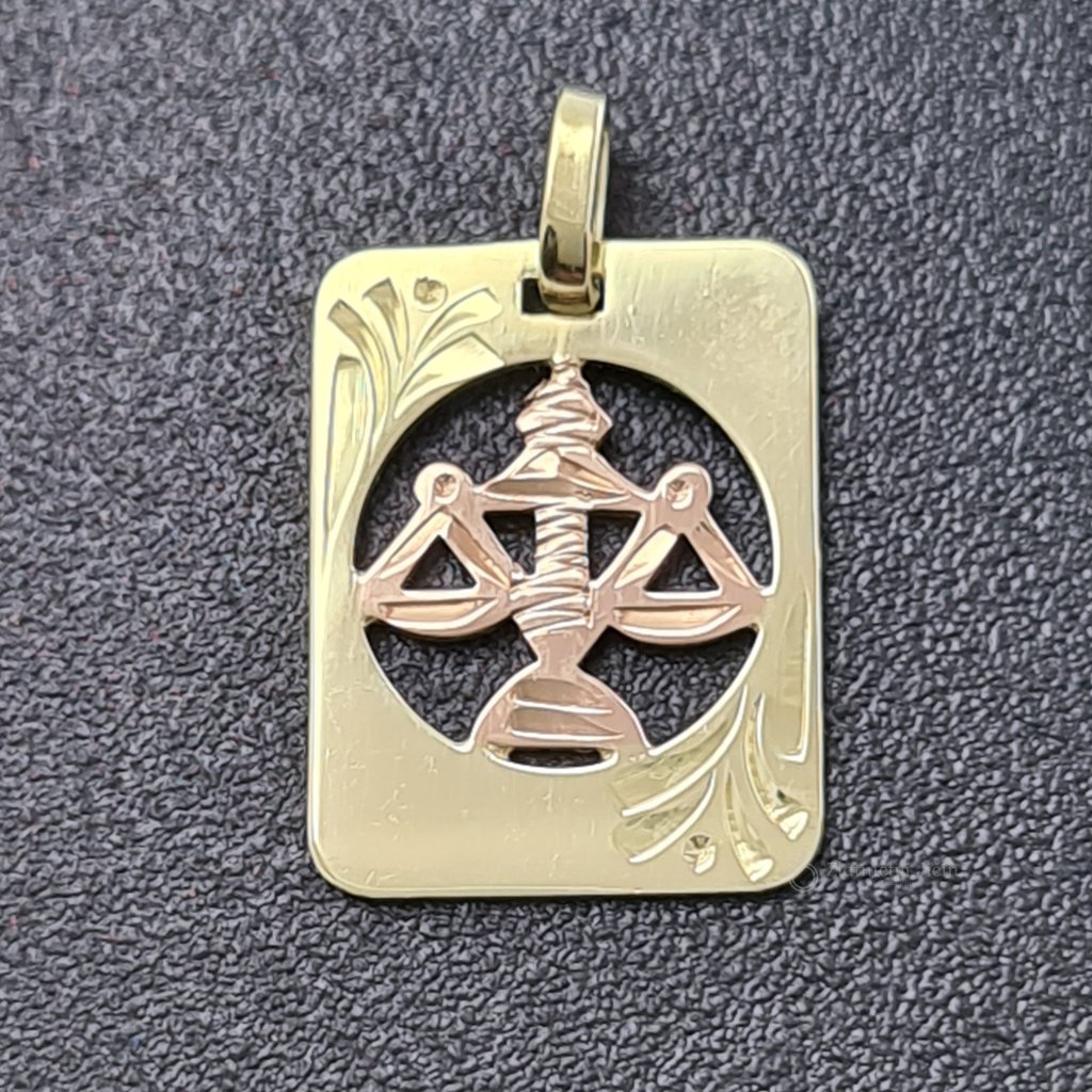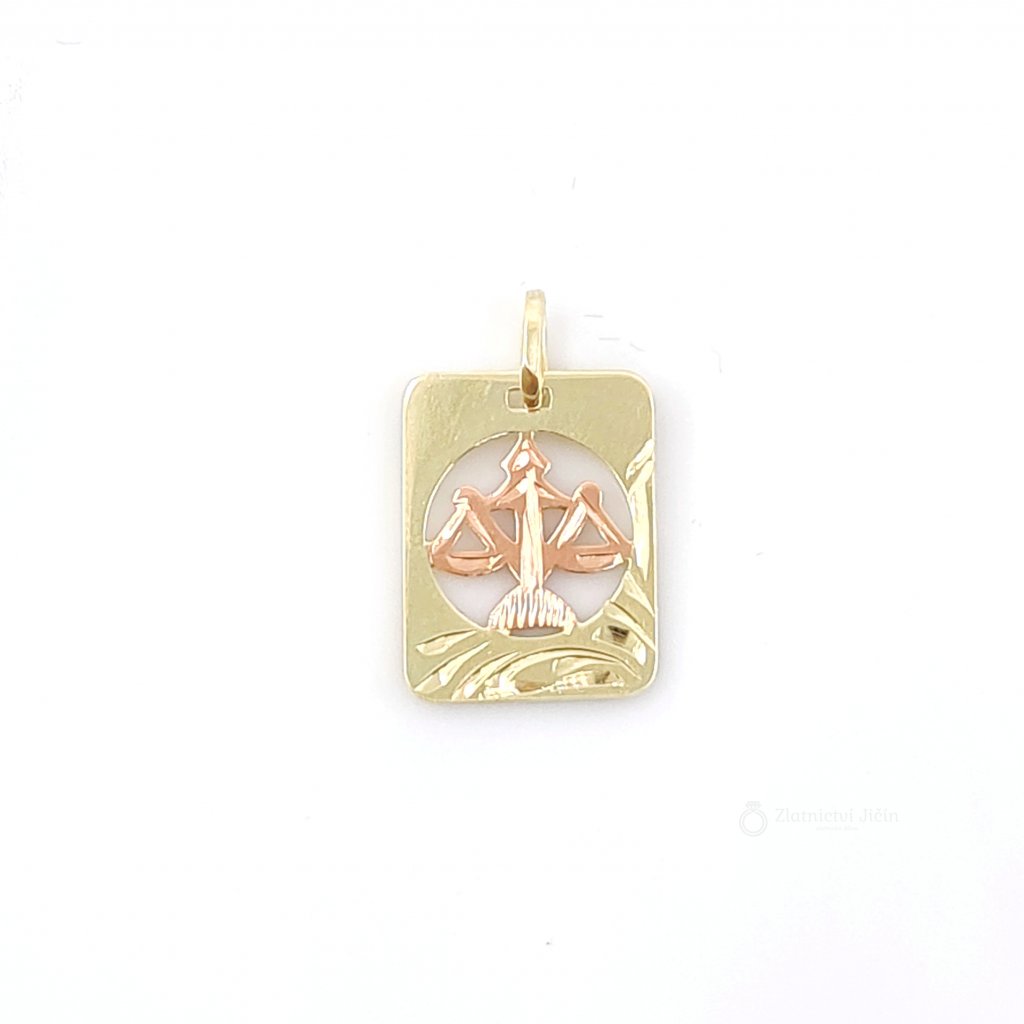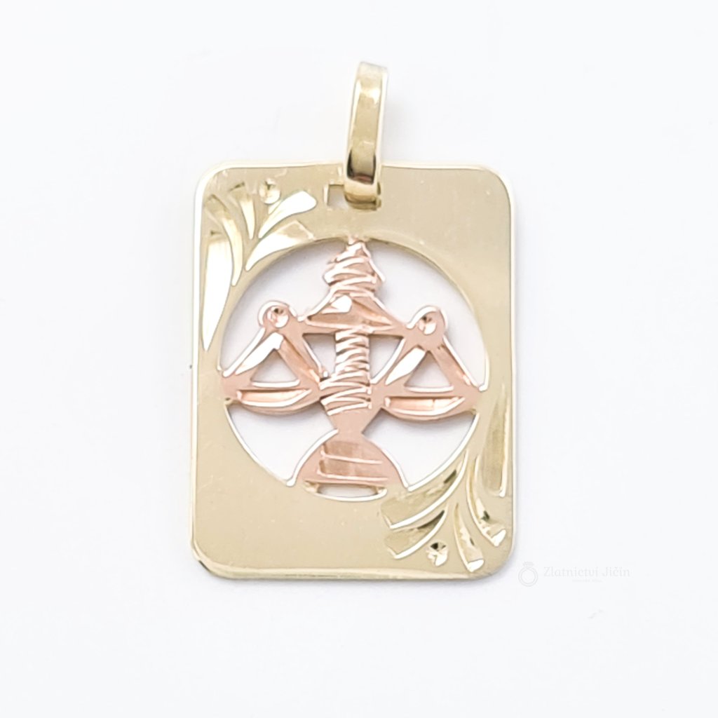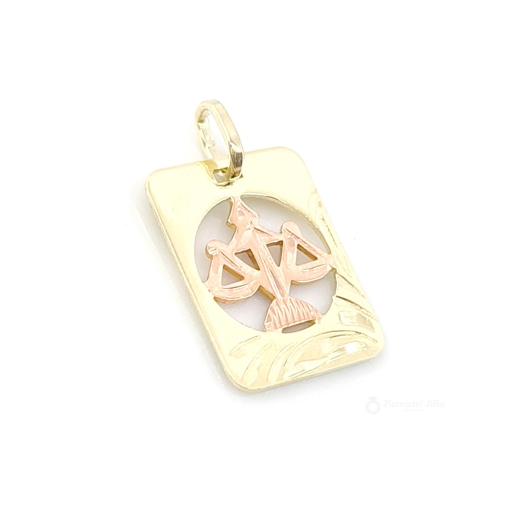 Znamení VÁHY v prořezávaném přívěsku ze žlutého a červeného zlata.