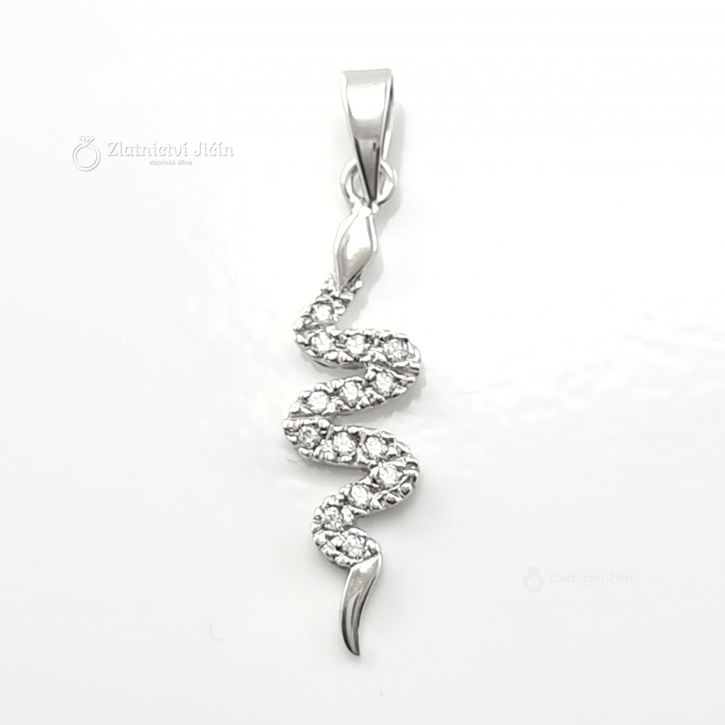 Malý přívěsek ze 14k bílého zlata ve tvaru hada.