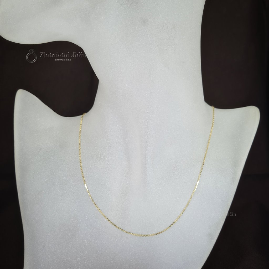Řetízek typu ankr je vyroben ze žlutého zlata o ryzosti 585/1000 (14kt).