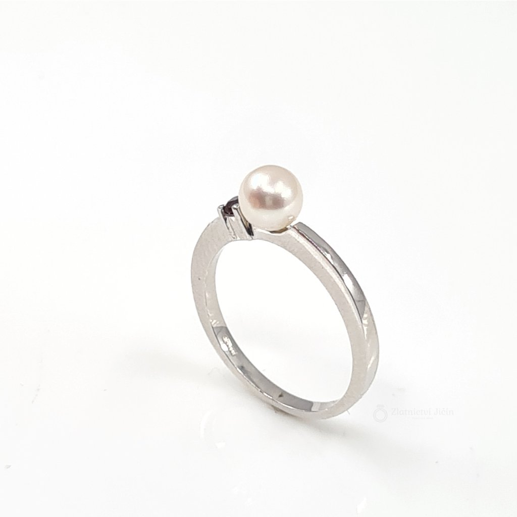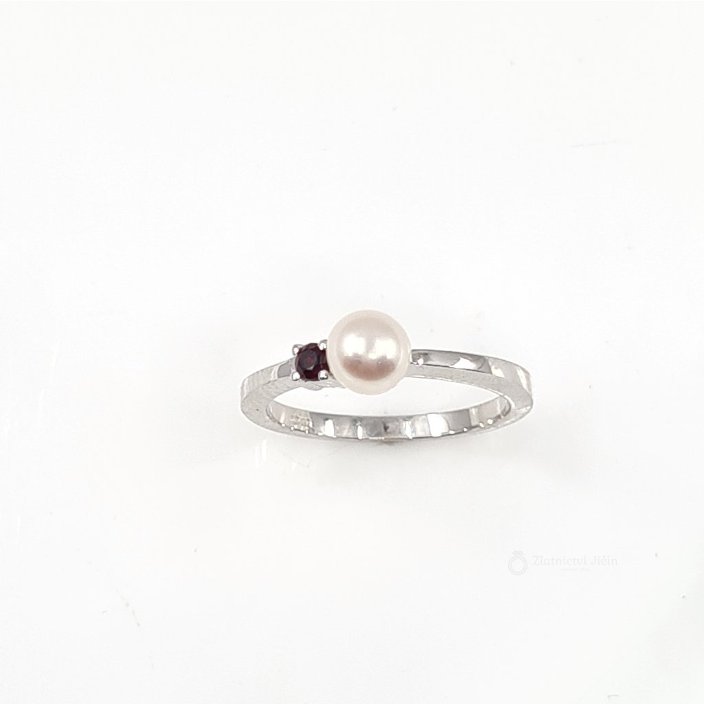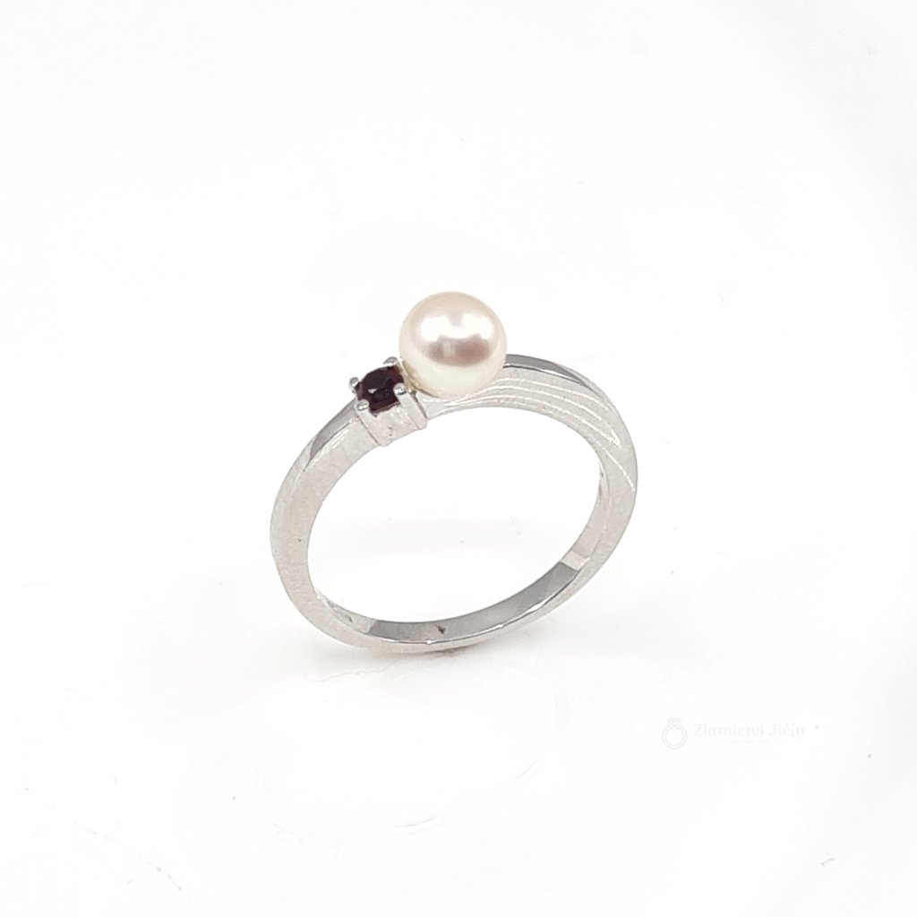Luxusní dámský prsten s dominantní kulatou říční perlou o průměru 5,50 mm a pravým českým granátem.