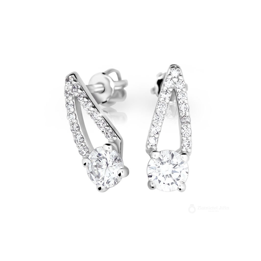 Elegantní dámské náušnice z bílého 14 karátového zlata, ozdobené 28 zirkony.
