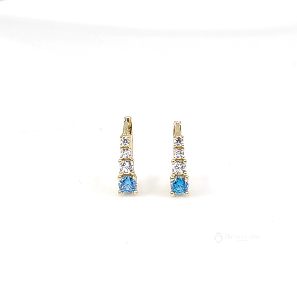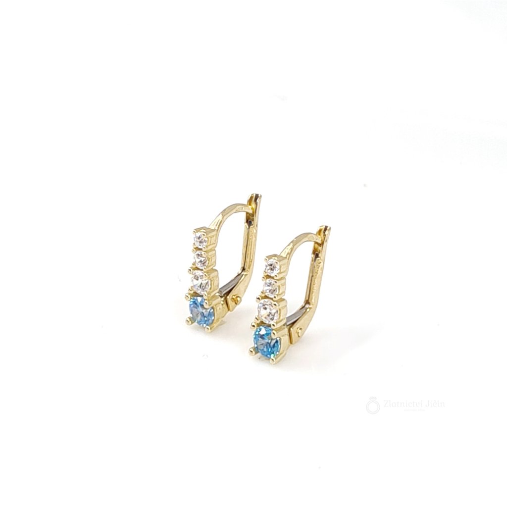 Elegantní dámské náušnice zdobené bílými a světle modrým syntetickým kamenem se zapínáním na klapku.