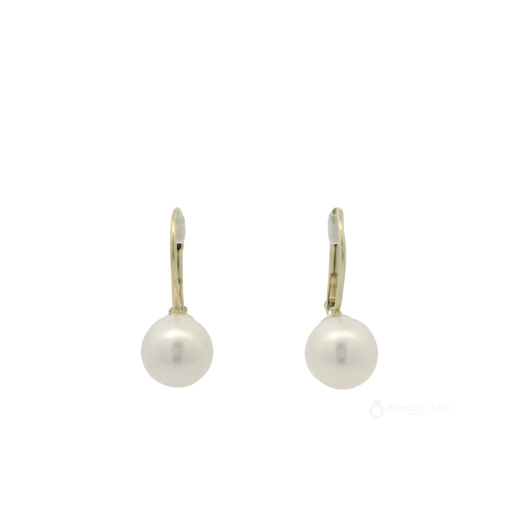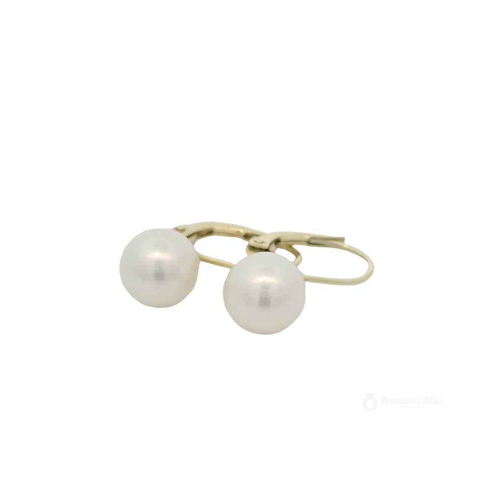 Něžné dámské náušnice s říční perlu o velikosti 7,5 mm se zapínáním na klapku.