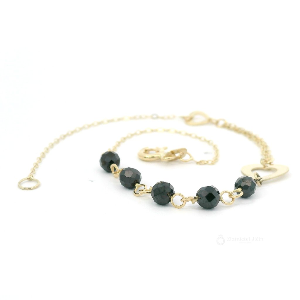 Náramek je doplněn o 5 kuliček Onyxu o velikosti 3,5 mm a dvě srdíčka 8,5 a 5,5 mm.