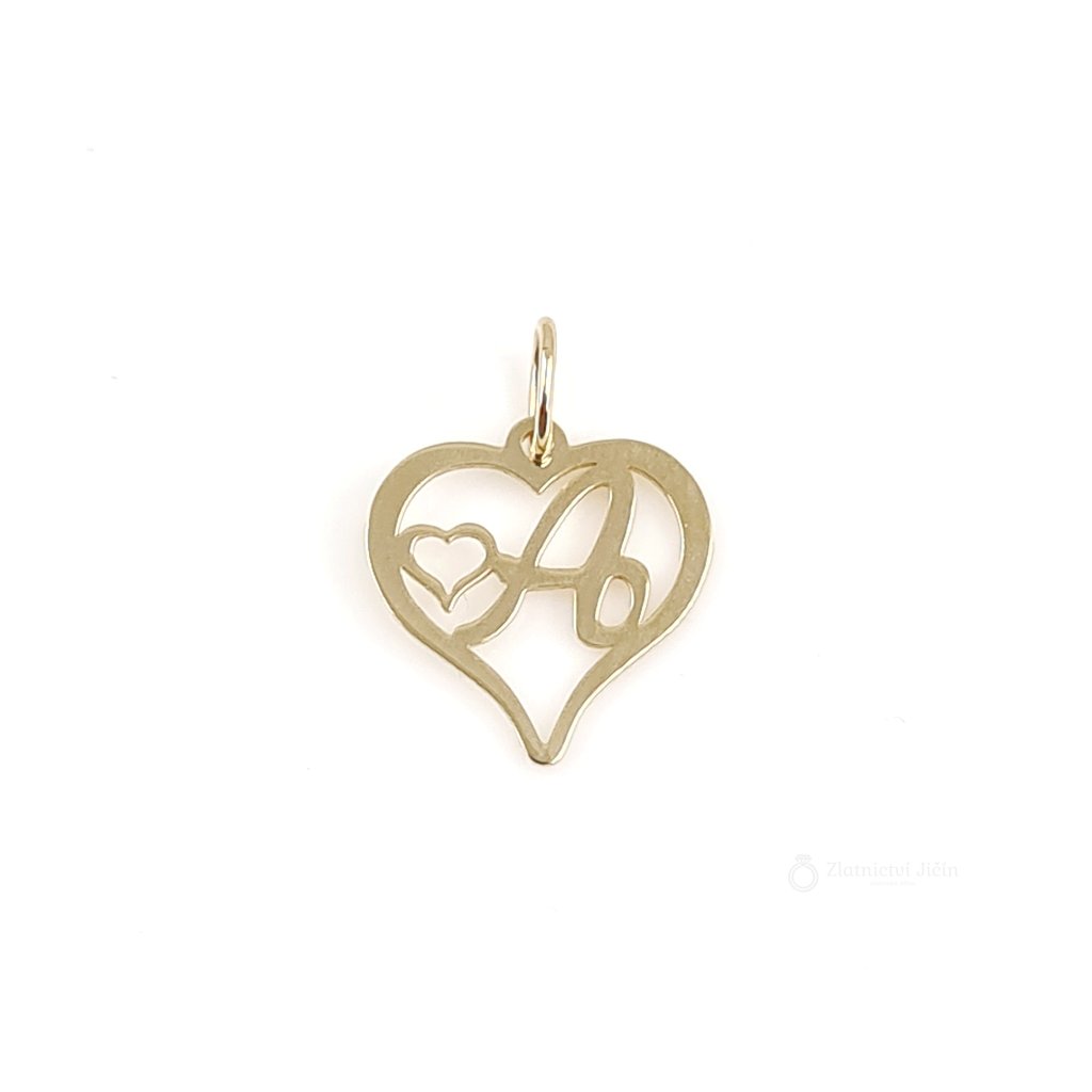 Zlatý přívěsek PÍSMENO A v srdíčku