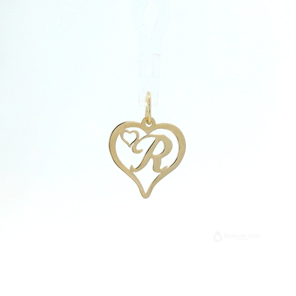 Zlatý přívěsek PÍSMENO R v srdíčku