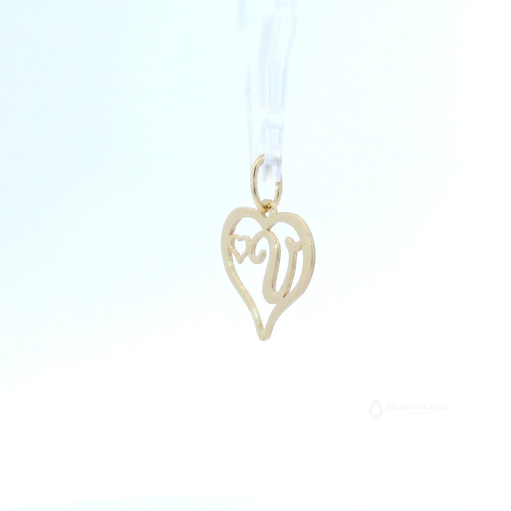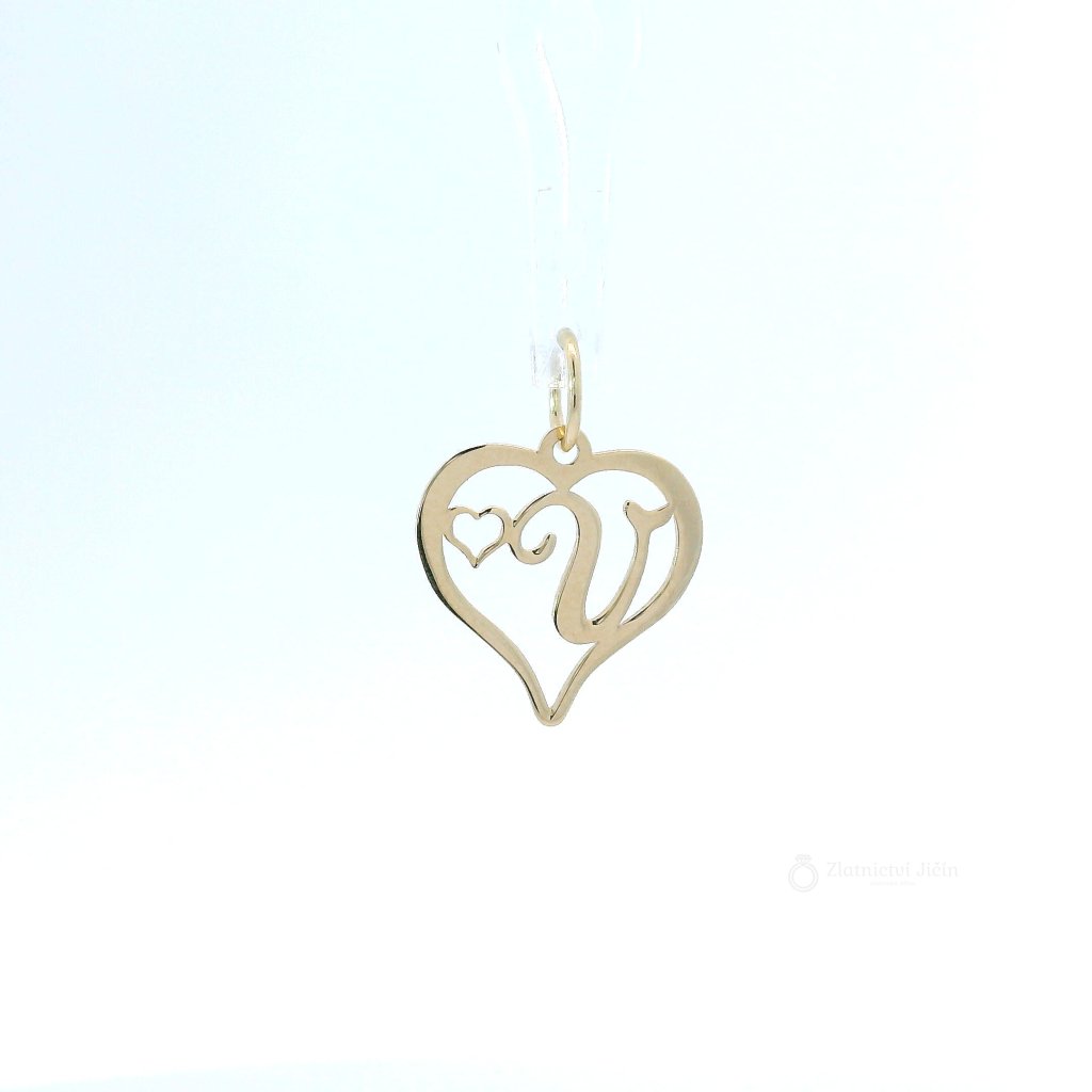 Zlatý přívěsek PÍSMENO V v srdíčku