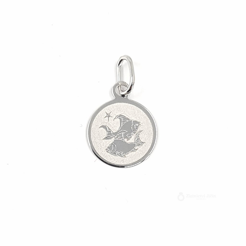 Přívěsek se znamením ryby je vyrobený ze 14 karátového bílého zlata.