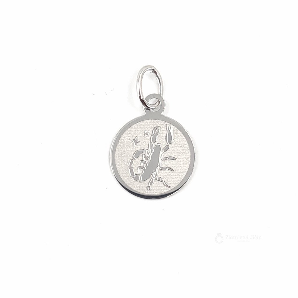 Přívěsek se znamením štír je vyrobený ze 14 karátového bílého zlata.