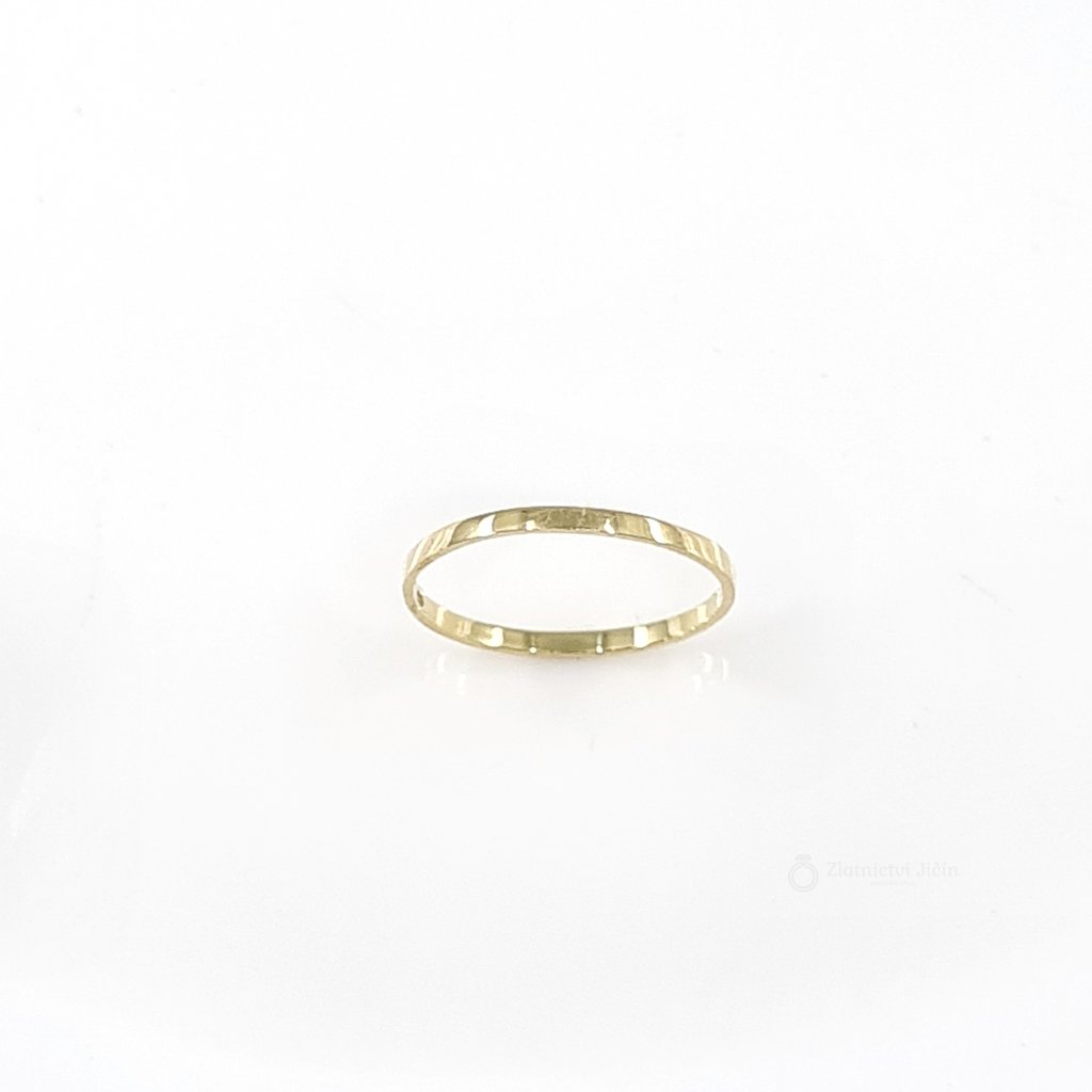 Prsten je vyroben ze 14k žlutého zlata v lesklé povrchové úpravě. Prsten ve velikosti 52.