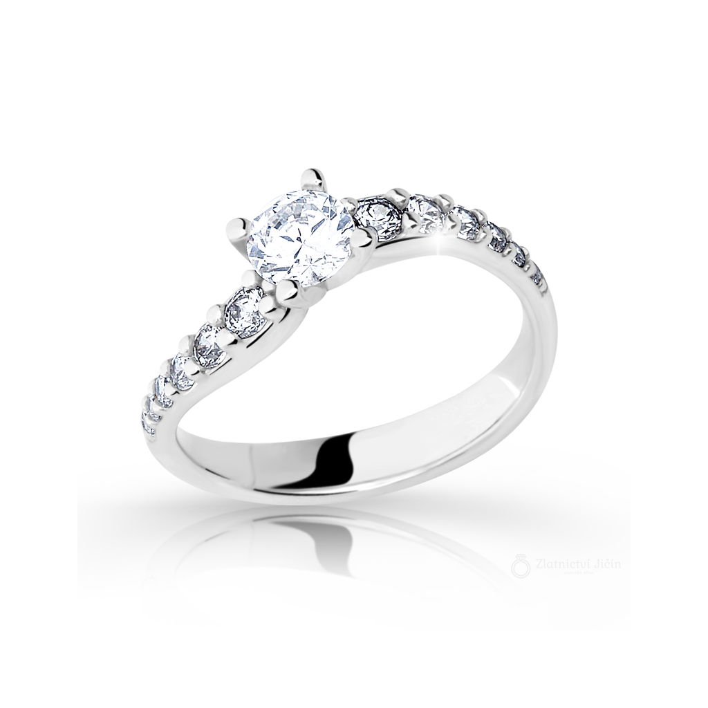 Do středu prstenu je umístěn zářivý zirkon, který lemuje dalších 12 malých zirkonů.