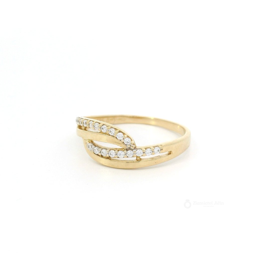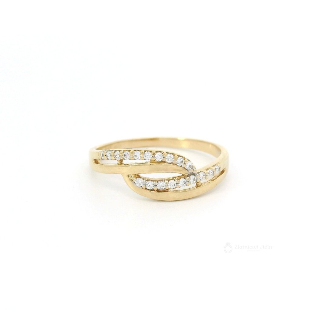 Nádherný prsten ze 14k žlutého zlata zdoben kubickými zirkony. Prsten o velikosti 54.