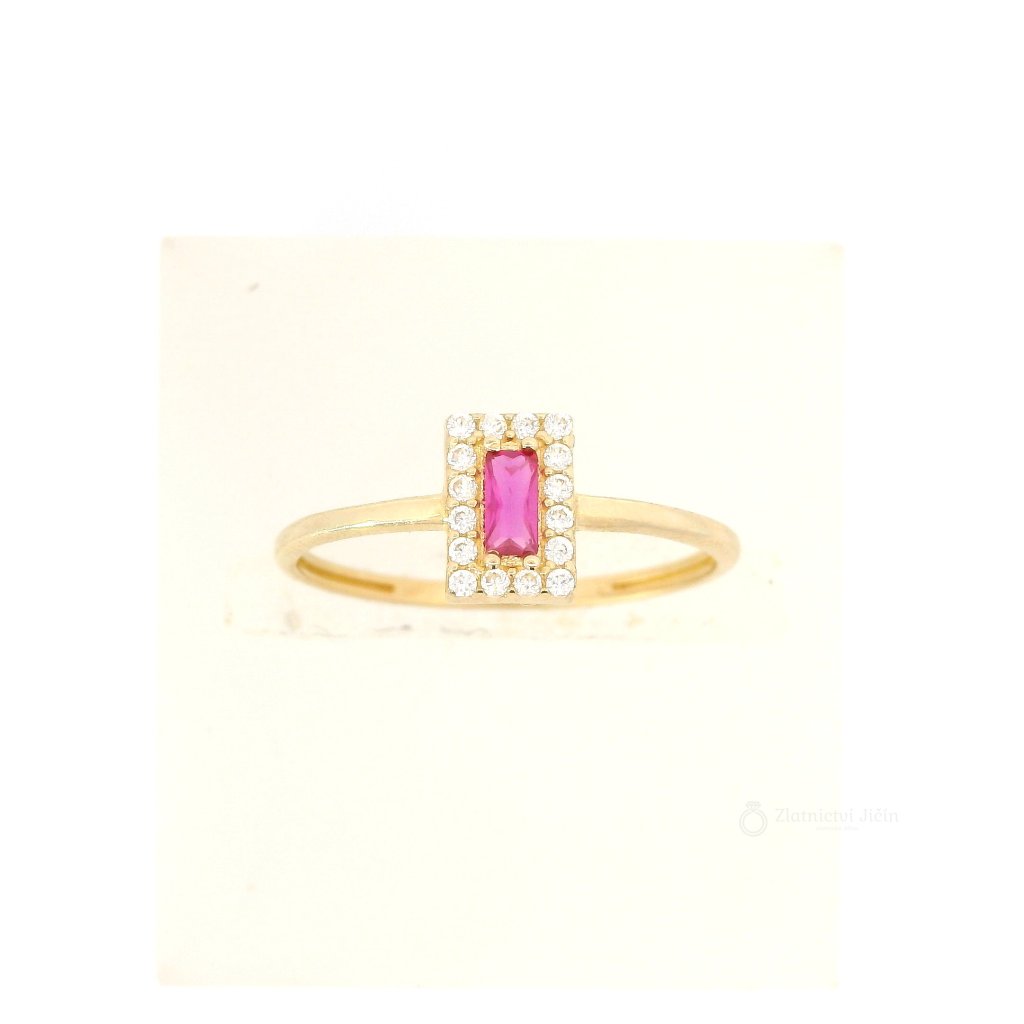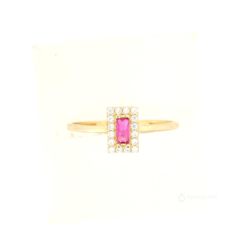 Zlatý prsten s kubickými zirkony a syntetickým rubínem