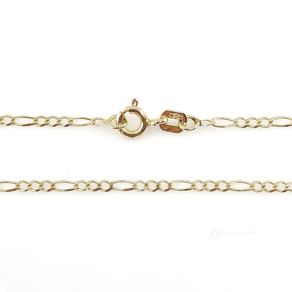 Řetízek typu FIGARO je vyroben ze žlutého zlata o ryzosti 585/1000 (14kt).