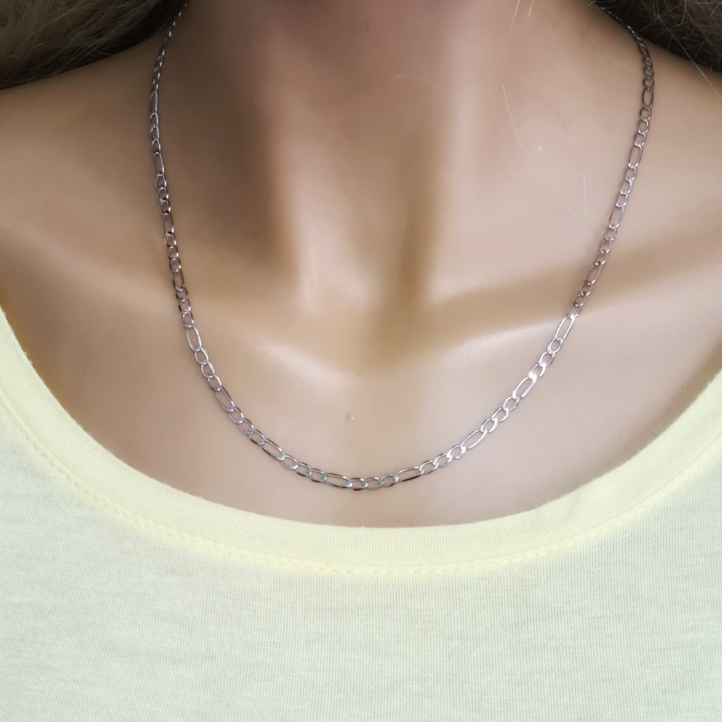 Silnější řetízek figaro vyrobený ze 14k bílého zlata. Rhodiováno.