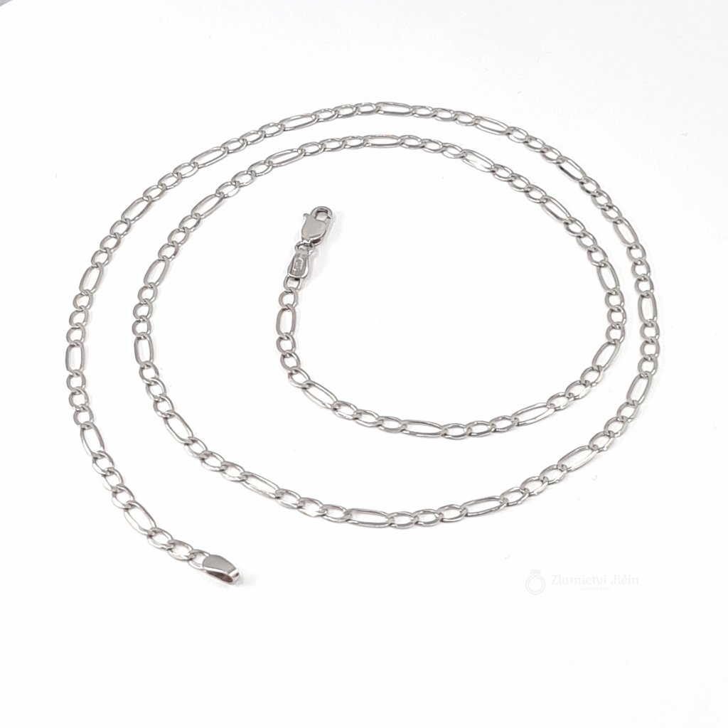 Jemný řetízek typu figaro ze 14k bílého zlata. Rhodiováno.