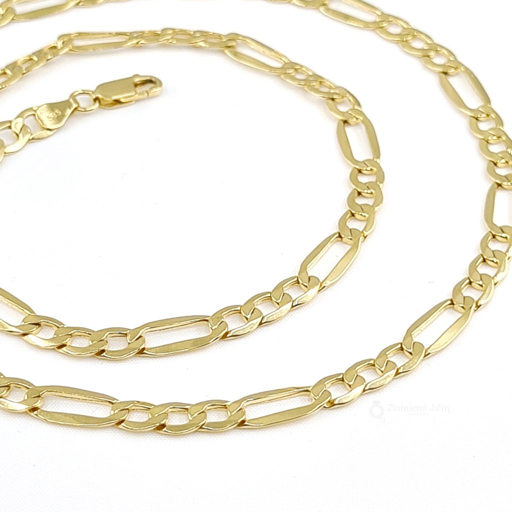 Zlatý řetízek figaro je vyroben ze žlutého zlata o ryzosti 585/1000 (14kt) se zavíráním na karabinku.